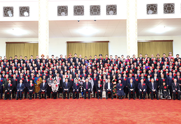 2月25日,全国脱贫攻坚总结表彰大会在北京人民大会堂隆重举行。会前,习近平等会见全国脱贫攻坚楷模荣誉称号获得者,全国脱贫攻坚先进个人、先进集体代表,全国脱贫攻坚楷模荣誉称号个人获得者和因公牺牲全国脱贫攻坚先进个人亲属代表等,并同大家合影留念。